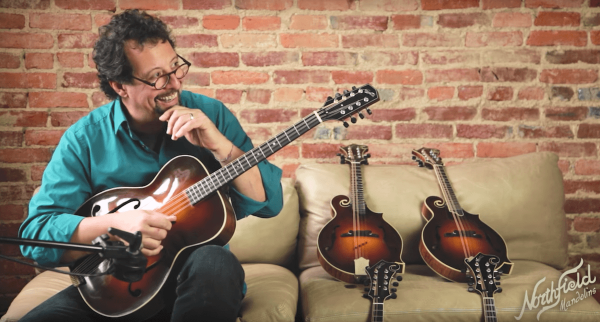 Mark Lavengood of Lindsay Lou & the Flatbellys demonstrates an F-Style mandolin from Eastman.